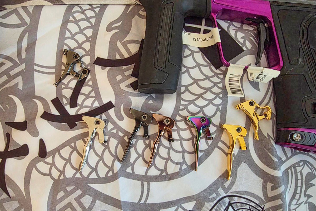 • Adrenaline Mech Triggers in plated Prsism, Rhodium, Black Chrome, Rose Gold or 24K gold with Adrenaline Hat and Regulator Case