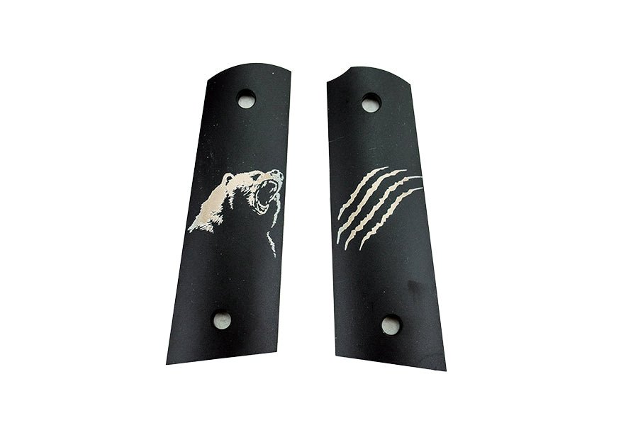 Includes a pair of Adrenaline Aluminum Mech Grips in either dust or polished anodized finish, long screws and the artwork of your choice (subject to the design limitations set forth below). Note that the Adrenaline Grips are custom made aluminum to our specifications. While they are 1911 format, they are not standard 1911 as they have no standard 1911 features. They do have a cut out for the CVO, Amp, Era & Luxe mechanical safety. A proof will be provided for your approval before we begin lasering.