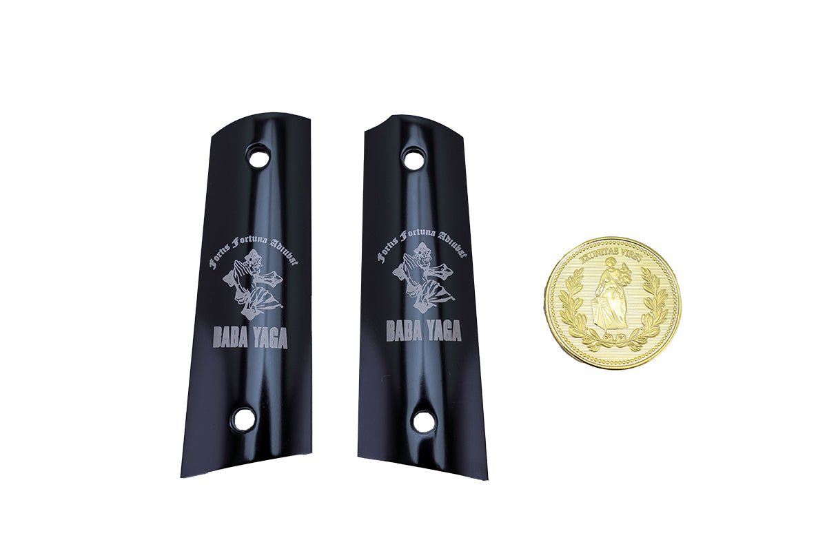 The Adrenaline Baba Yaga Mechanical Grips are custom aluminum grips machined by Adrenaline and anodized polished black with Baba Yaga theme. Includes a metal coin from the Continental in a plastic case. While standard 1911 grips have universal latch and safety cuts, these grips were custom designed for by Adrenaline to fit the following mechanical frames: Luxe TM40, Luxe IDOL, Shocker CVO, Shocker AMP and Shocker ERA. Each set includes 4 extended length stainless steel screws to secure it to the frame.